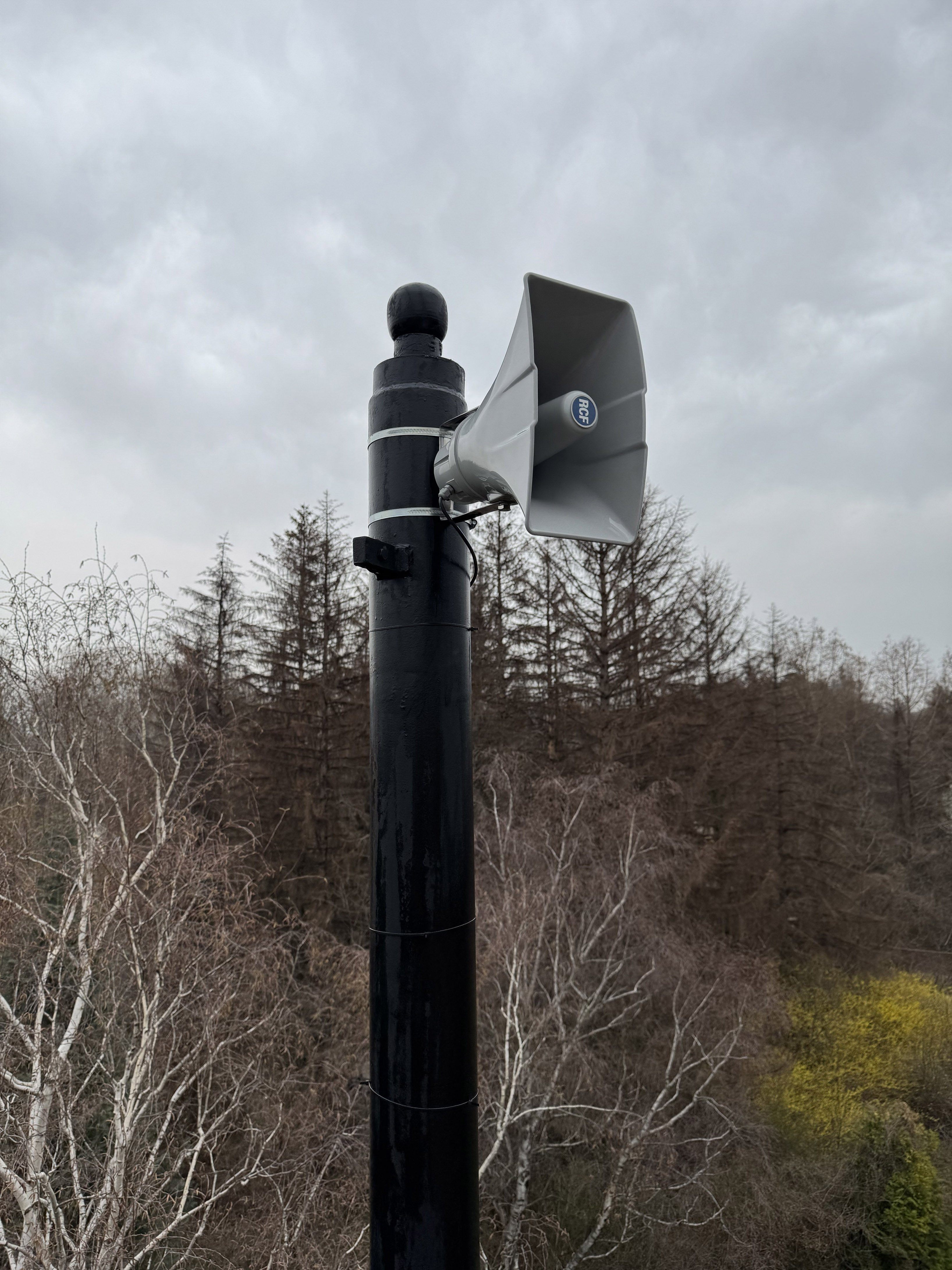 Sound Flags, 2025. Installation, flagpoles, speakers. Installation view, National History Museum, Sofia.